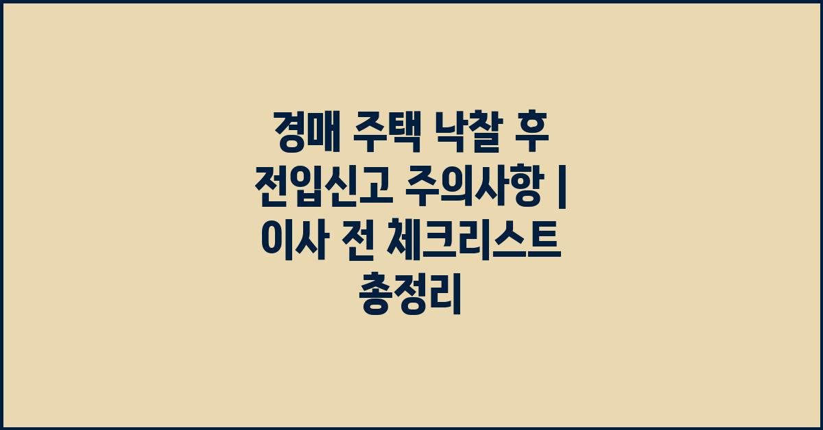 이사 후에도 여러분이 이 장소에서 오랫동안 행복한 시간을 보낼 수 있도록, 모든 준비를 철저히 하세요. 경매 주택 낙찰 후 전입신고 주의사항은 단순한 체크리스트를 넘어, 여러분의 첫 발을 내딛는 순간이 되었으면 좋겠습니다!