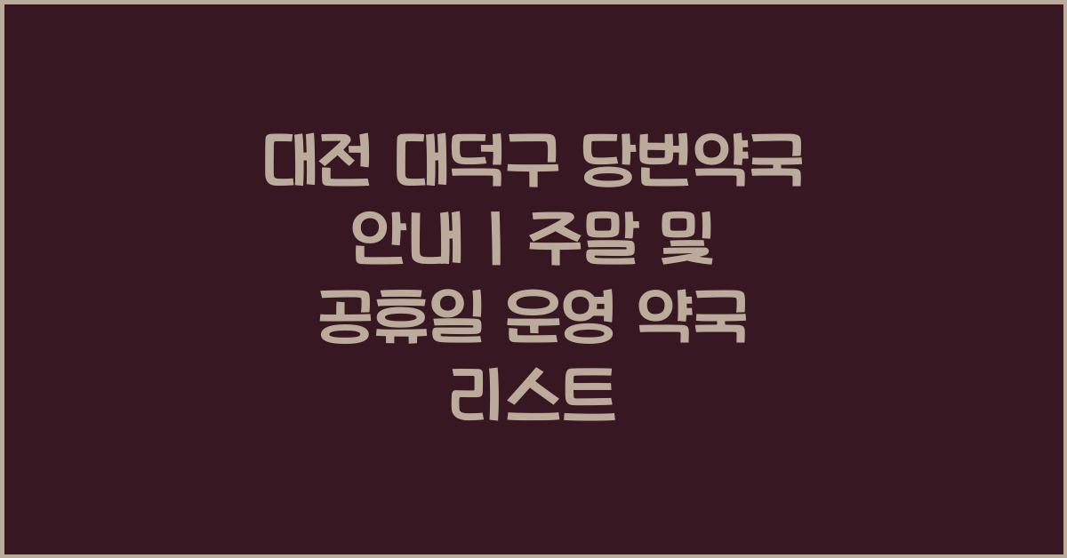 A1: 지역 보건소나 대전 대덕구의 공식 웹사이트에서 주말 및 공휴일 운영 약국 리스트를 확인할 수 있습니다.
