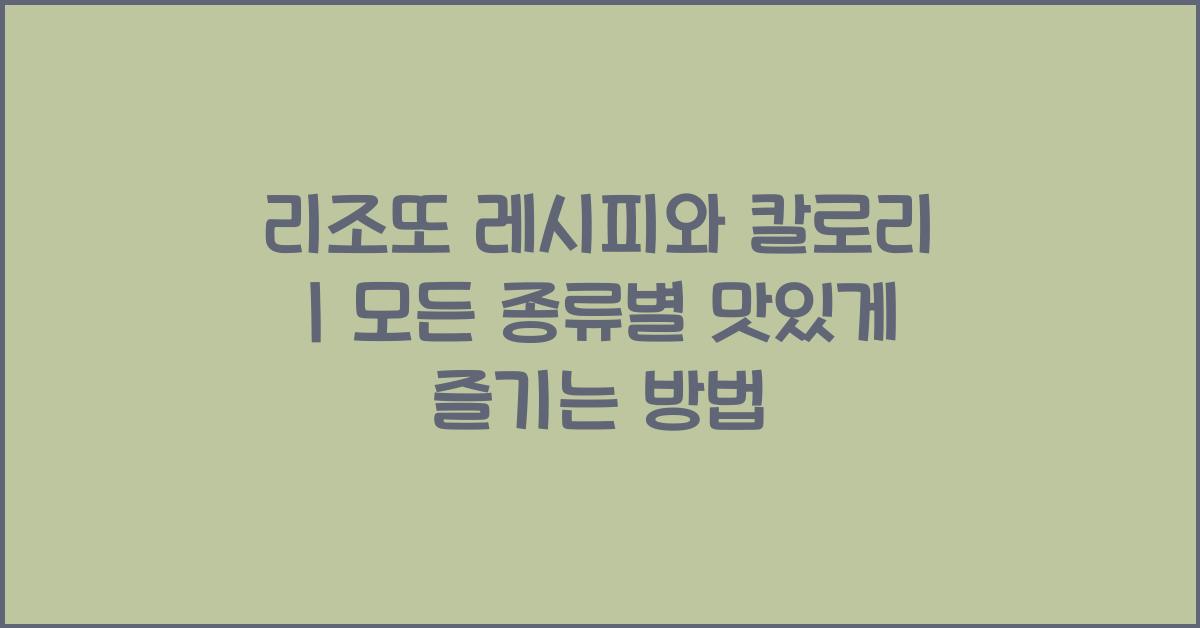💡 종류별 리조또 레시피와 칼로리