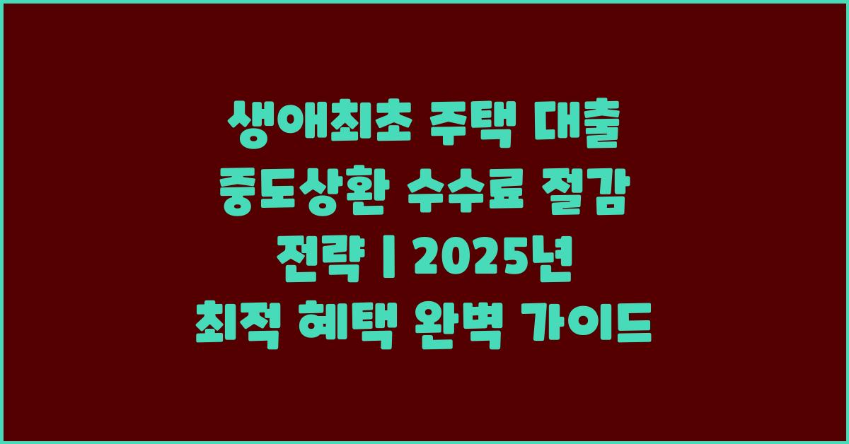 💡 생애최초 주택 대출 중도상환 수수료 절감을 위한 직접적인 접근법
