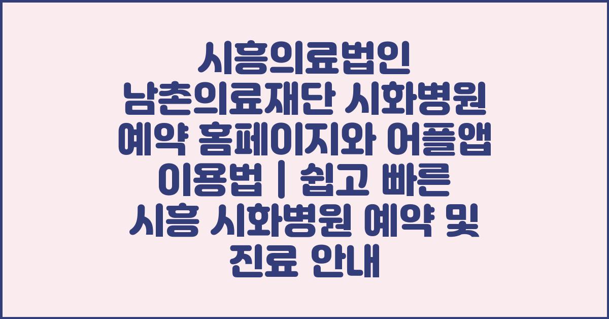 시흥의료법인 남촌의료재단 시화병원 예약 홈페이지와 어플앱 이용법이 궁금하신 분들에게 유용한 정보가 되었기를 바랍니다. 여러분의 건강을 위해 언제든지 편리하게 이용해 보세요!