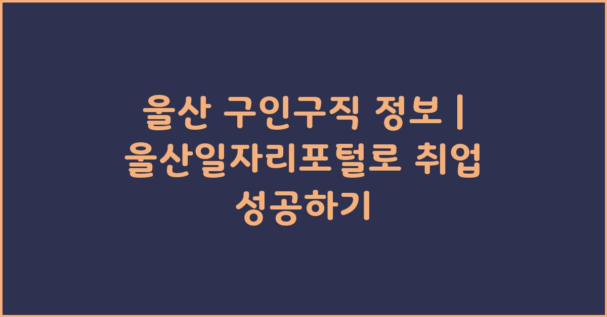 📌 울산 구인구직 정보 | 울산일자리포털 활용법의 중요성