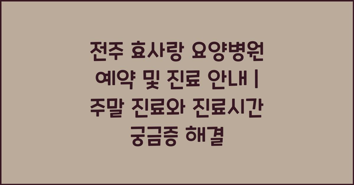 Q1: 전주 효사랑 요양병원 예약은 어떻게 하나요?