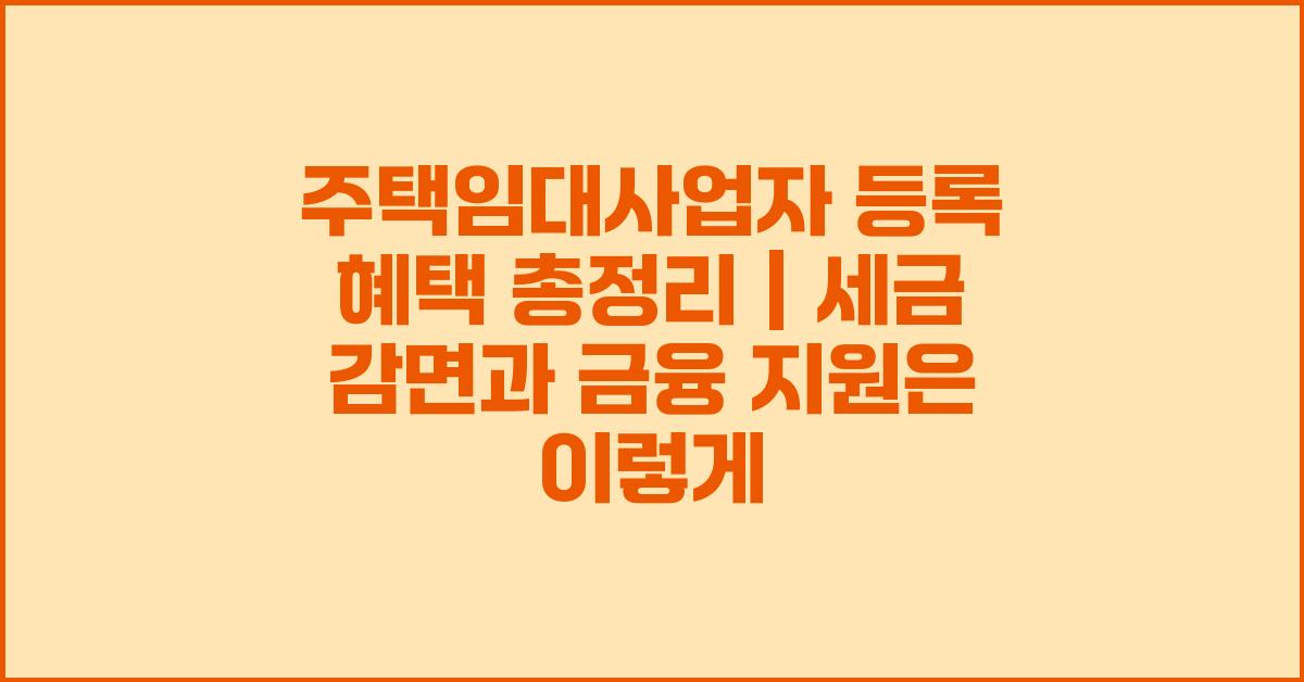 주택임대사업자 등록 혜택 총정리 | 세금 감면 및 금융 지원 정보는 주택을 임대하는 데 있어 그뿐만 아니라 금융 지원과 관련된 내용을 포함하고 있습니다. 많은 금융 기관이 주택임대사업자를 위한 대출 상품을 제공하고 있으며, 저금리의 혜택을 누릴 수 있습니다.