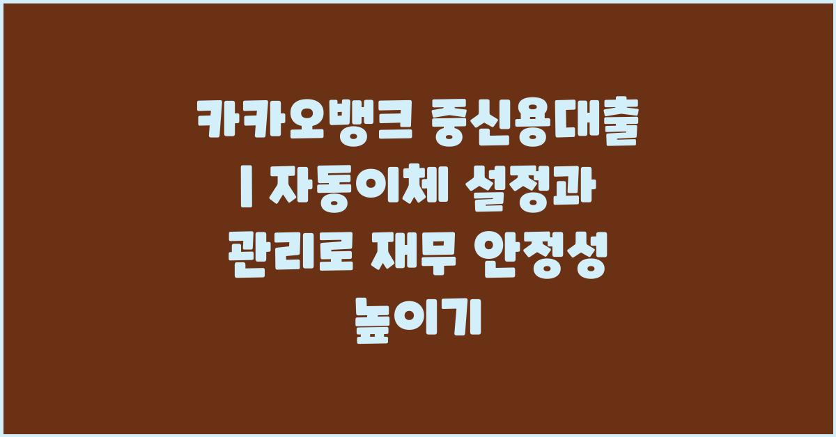 카카오뱅크 중신용대출 | 자동이체 설정 및 관리 방법을 통해 재무적으로 안정된 삶을 이루고, 합리적인 금융 계획을 세워보세요. 여러분의 금융 건전성을 높이는 데 큰 도움이 될 것입니다!